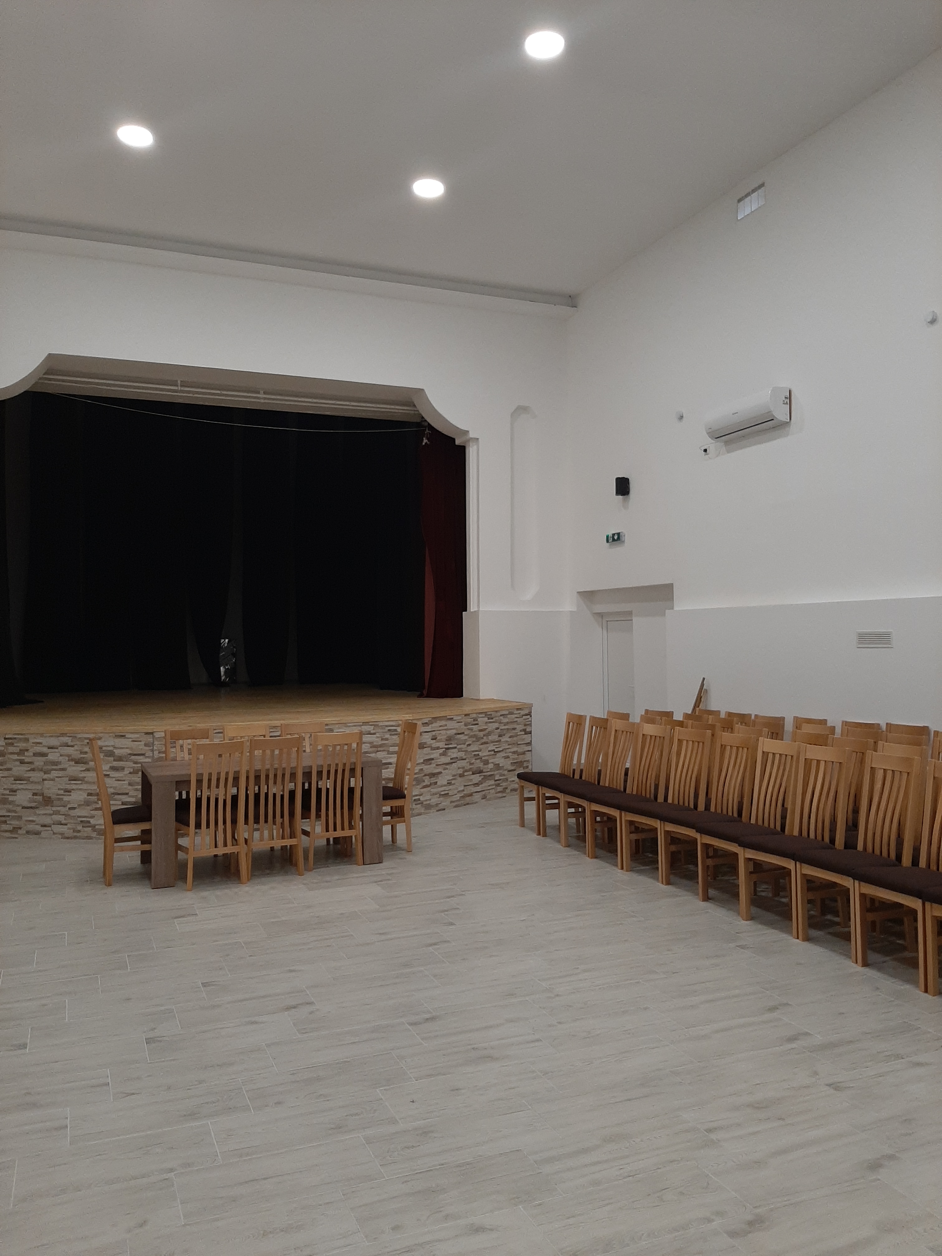 Sažetak provedenih aktivnosti: Radovi na unutarnjem uređenju doma kulture, koji obuhvaćaju zamjenu stare i dotrajale podne podloge u sali, galeriji i pomoćnim prostorijama; izradu spuštenog stropa u sali, postavljanje novih vrata u sali, obnovu i bojanje zidova i stropova u sali, galeriji i pomoćnim prostorijama te ugradnju novih rasvjetnih tijela.