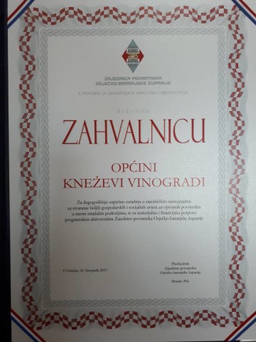 Cilj projekta je unapređenje turističke kvalitete i turističkih sadržaja Općine Kneževi Vinogradi, kroz razvoj turističke i biciklističke infrastrukture te stavljanje u turističku funkciju javan sadržaj i infrastrukturu. Realizacijom projekta unaprijeđena je turistička ponuda, što će se pozitivno odraziti i na turističke dionike sa područja općine (smještajni kapaciteti, ugostitelji, OPG-ovi).